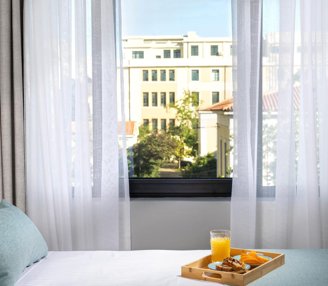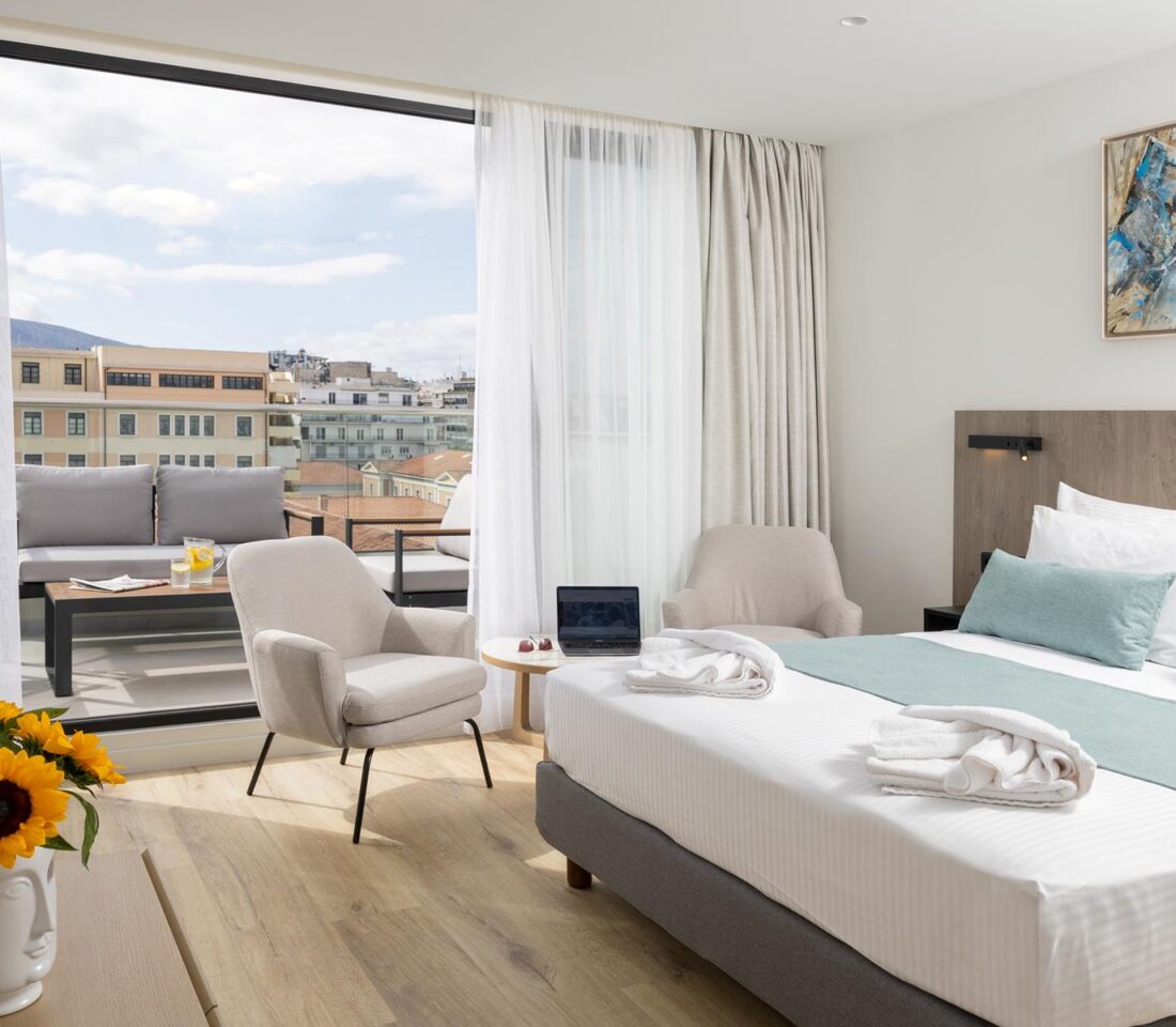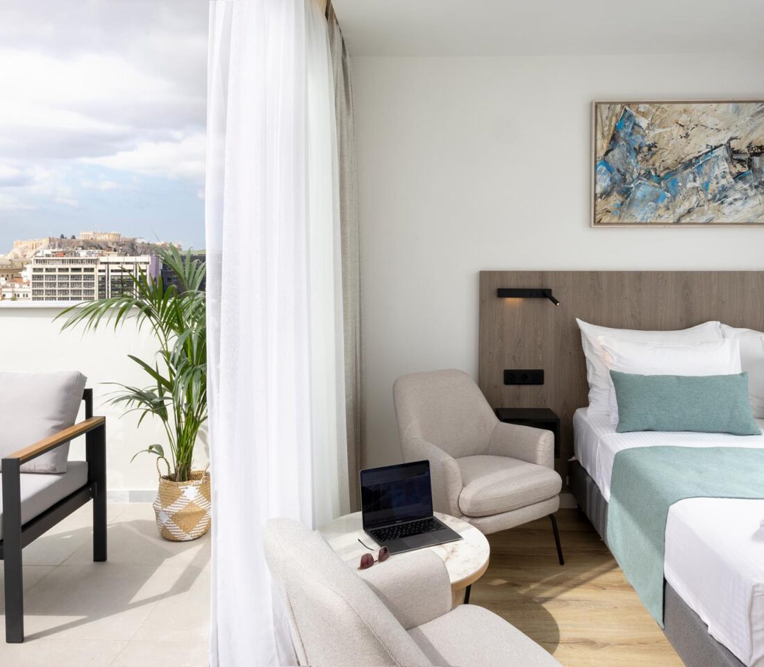 Ideal for: Solo travelers or couples looking for brand new spaces with a great location. Located at the most iconic part of the Athenian city center, easy access to main attractions & hubs, and with great views of the Athenian Cultural Centre.