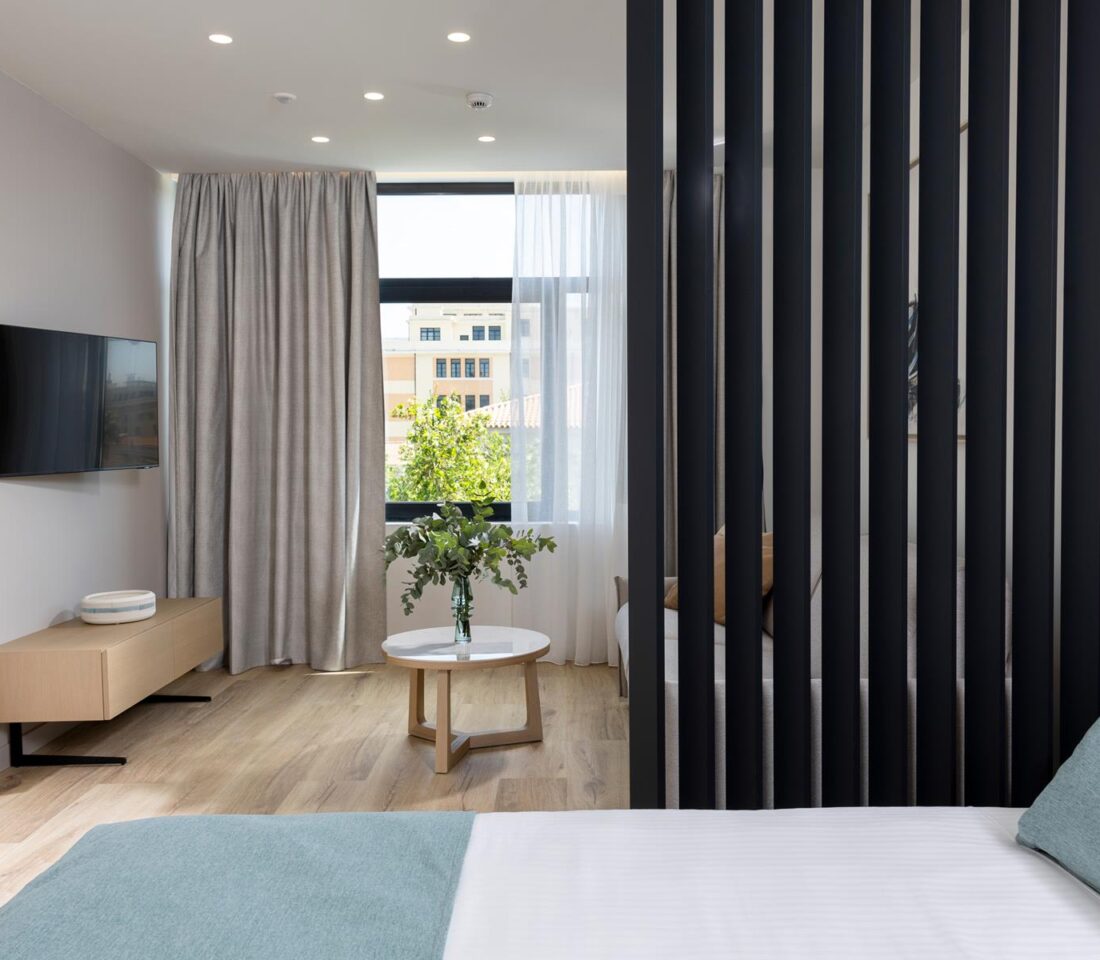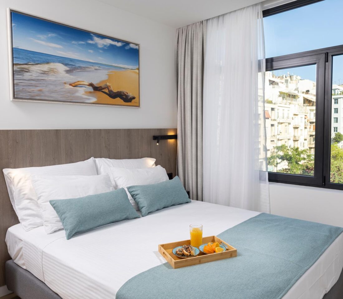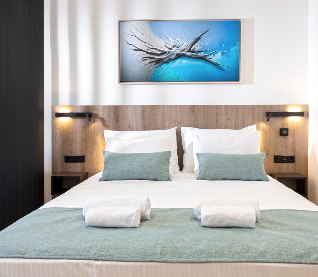 Ideal for: Solo travelers or couples looking for brand new spaces with a great location. Located at the most iconic part of the Athenian city center, easy access to main attractions & hubs, and with great views of the Athenian Cultural Centre.